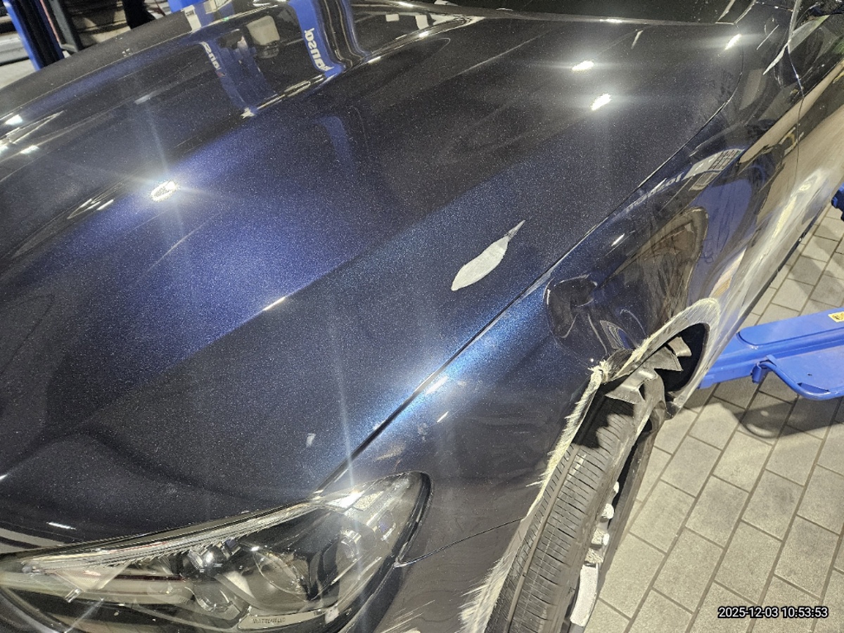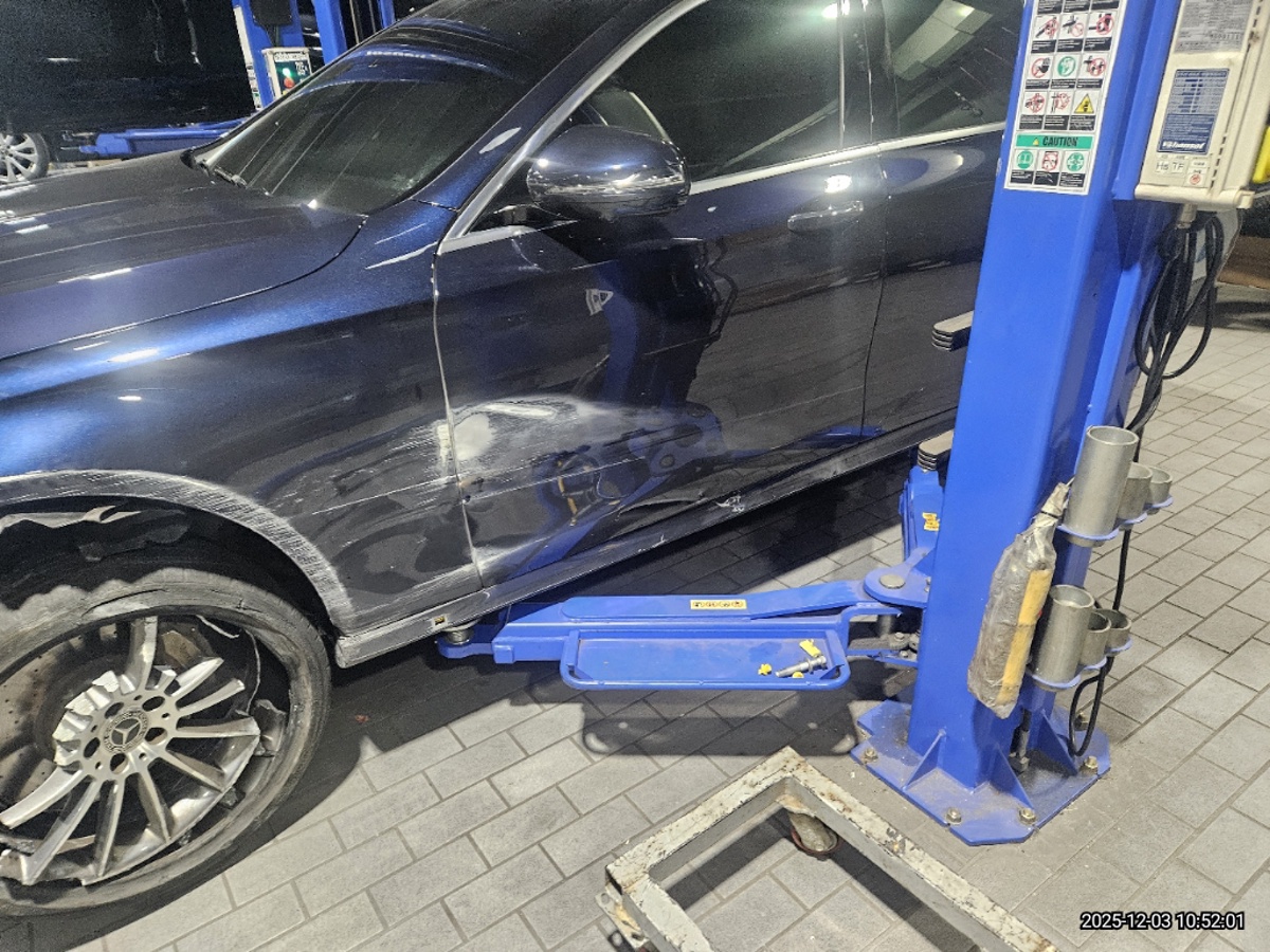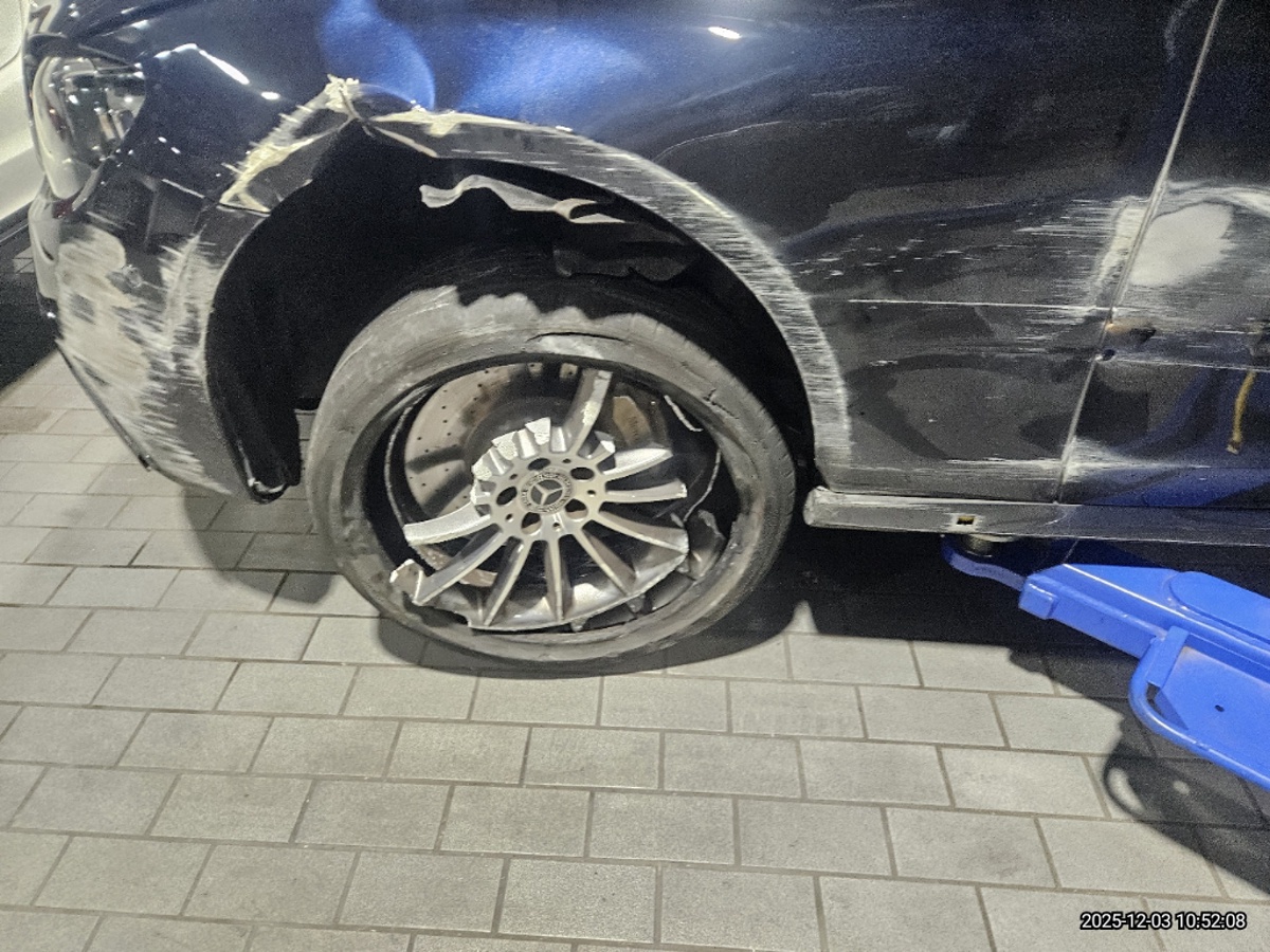 Повреждена передняя и задняя часть снизу, а также левый бок