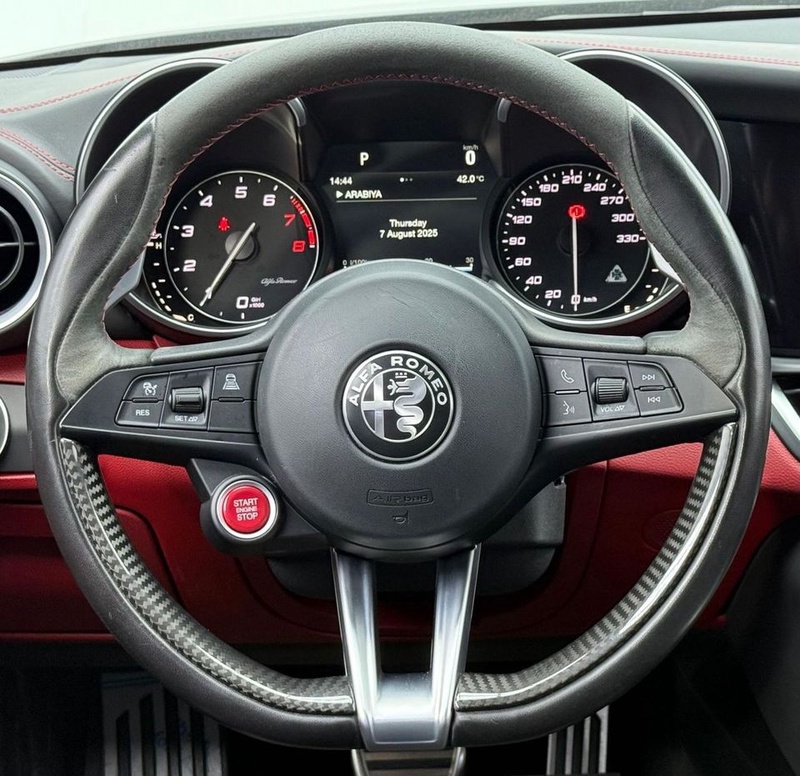 Модель представлена в кузове седан 2018 года выпуска с бензиновым двигателем объемом 2.9 литра и задним приводом. Автомобиль оснащен автоматической трансмиссией и относится к премиальной комплектации Quadrifoglio. По данным осмотра, пробег составляет около 50 тысяч километров, что свидетельствует об умеренной эксплуатации преимущественно в городских условиях с периодическими выездами на трассу. С учетом пробега можно отметить хорошую сохранность технических узлов и систем, характерную для автомобилей с регулярным обслуживанием. Интерьер сохранил первоначальный вид без существенных следов износа, что подтверждает аккуратное отношение предыдущего владельца. Состояние кузова соответствует заявленному пробегу без видимых повреждений и следов ремонтных работ. Автомобиль импортирован из Объединенных Арабских Эмиратов, где климатические условия способствуют длительной сохранности лакокрасочного покрытия и элементов кузова. Автомобиль находится в ОАЭ и доступен к покупке с последующей доставкой в Россию.