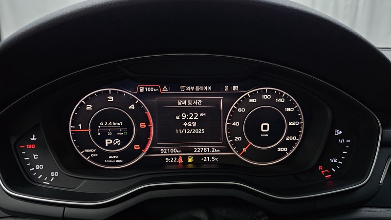 Audi A4 2018 года выпуска представлен в дизельной версии с двигателем объемом 2.0 литра и системой полного привода Quattro. Автомобиль оснащен комплектацией Premium, что обеспечивает расширенный набор опций для комфортной эксплуатации. Пробег составляет 92 тыс. км, что соответствует умеренной интенсивности использования преимущественно в городских условиях с периодическими выездами на трассу. По данным осмотра техническое состояние основных узлов оценивается как удовлетворительное: двигатель, трансмиссия и ходовая часть функционируют без критических замечаний. Страховая история включает одно обращение с общей суммой выплат 151000 рублей, что свидетельствует о единичном страховом случае без серьезных последствий для общего состояния автомобиля. С учетом пробега и данных о техническом обслуживании можно отметить сохранность интерьера и кузовных элементов на уровне, типичном для данного возраста и километража. Автомобиль находится в Южной Корее и доступен к покупке с последующей доставкой в Россию.