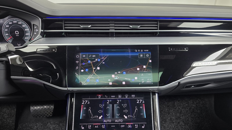 Представительский седан Audi A8 2021 года выпуска оснащён дизельным двигателем объёмом 3.0 литра в сочетании с полным приводом Quattro и автоматической трансмиссией. Автомобиль представлен в комплектации 50 TDI Quattro, которая обеспечивает высокий уровень комфорта и безопасности. По данным осмотра, техническое состояние узлов и агрегатов оценивается как удовлетворительное: двигатель, трансмиссия, тормозная система и электрооборудование функционируют без замечаний. Пробег составляет 88 тыс. км, что характерно для умеренной эксплуатации преимущественно в городских условиях с периодическими выездами на трассу. С учётом пробега сохранность кузова и интерьера соответствует ожиданиям для данного возраста автомобиля — видимых повреждений или следов ремонта не зафиксировано. Страховая история показывает отсутствие обращений по страховым случаям, что свидетельствует об аккуратном вождении и бережной эксплуатации предыдущим владельцем. Обслуживание проводилось регулярно, о чём говорят записи в сервисной книжке и отсутствие нареканий по основным системам при диагностике. Автомобиль находится в Южной Корее и доступен к покупке с последующей доставкой в Россию.