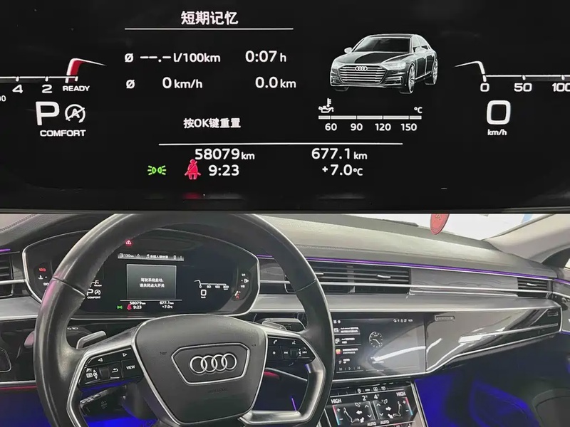 Автомобиль Audi A8 2021 года выпуска оснащён бензиновым двигателем с турбонаддувом объёмом 3.0 литра, который работает в паре с 48-вольтовой гибридной системой. Модель представлена в полноприводной комплектации AWD с автоматической коробкой передач на восемь ступеней. По данным осмотра, пробег составляет 58 тыс. км — для автомобиля данного класса это умеренный показатель, свидетельствующий о преимущественно смешанном режиме эксплуатации (городские поездки сочетаются с загородными маршрутами). Учитывая происхождение из Китая, где климатические условия и качество дорожного покрытия варьируются по регионам, можно отметить, что машина сохранила хорошее техническое состояние: интерьер не имеет значительных следов износа, а кузовные элементы не подвергались ремонту после повреждений. Страховая история отсутствует, что указывает на аккуратное вождение и отсутствие серьёзных инцидентов за весь период эксплуатации. С учётом пробега и отсутствия страховых обращений общее состояние оценивается как отличное — автомобиль демонстрирует характерную для данного возраста сохранность узлов и агрегатов при регулярном техническом обслуживании. Автомобиль находится в Китае и доступен к покупке с последующей доставкой в Россию.