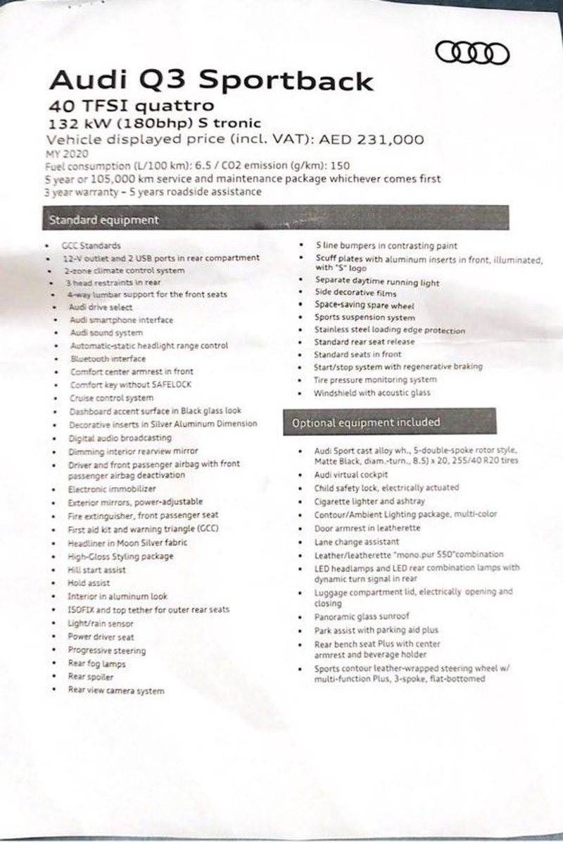 Модель Audi Q3 2020 года выпуска представлена в кузове SUV с бензиновым двигателем объемом 2.0 литра. Автомобиль оснащен полным приводом и комплектацией Sportback 40 TFSI S Line с автоматической коробкой передач. По данным пробега в 67 тыс. км можно отметить характерную для данного километража сохранность технического состояния, соответствующую смешанному режиму эксплуатации в городских и загородных условиях. История обслуживания демонстрирует аккуратное отношение к автомобилю, что положительно отражается на сохранности интерьера и общем техническом состоянии. С учетом отсутствия зафиксированных кузовных повреждений и нулевой страховой истории, транспортное средство оценивается как находящееся в хорошем состоянии без значительных инцидентов в эксплуатации. Автомобиль находится в Объединённых Арабских Эмиратах и доступен к покупке с последующей доставкой в Россию.