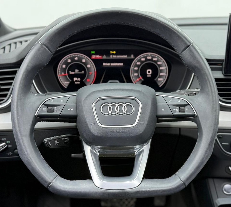 Модель Audi Q5 2024 года выпуска оснащена бензиновым двигателем объёмом 2.0 литра с системой полного привода AWD и автоматической коробкой передач. Комплектация S Line включает спортивный экстерьер, кожаный салон чёрного цвета и диски диаметром 19 дюймов. Пробег автомобиля составляет 25 тыс. км, что соответствует смешанному режиму эксплуатации в городских условиях и на трассе. По данным осмотра кузовные элементы не имеют повреждений, что свидетельствует об аккуратном вождении и бережном обслуживании. Страховая история отсутствует, что указывает на отсутствие серьёзных инцидентов за период эксплуатации. С учётом пробега интерьер сохранился в хорошем состоянии, характерном для данного возраста автомобиля. Автомобиль находится в Объединённых Арабских Эмиратах и доступен к покупке с последующей доставкой в Россию.
