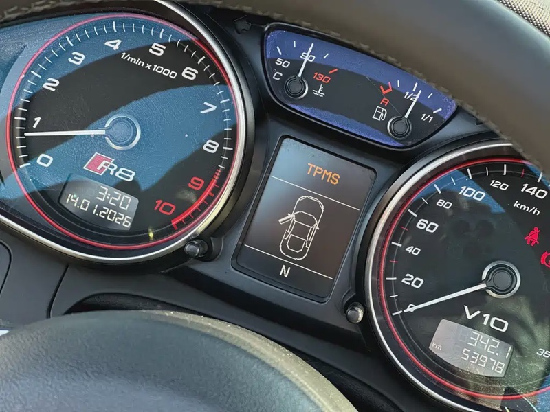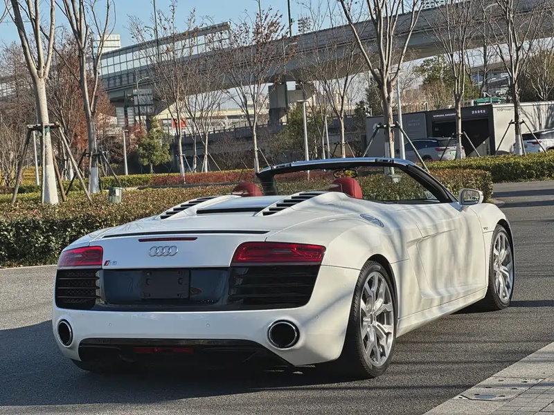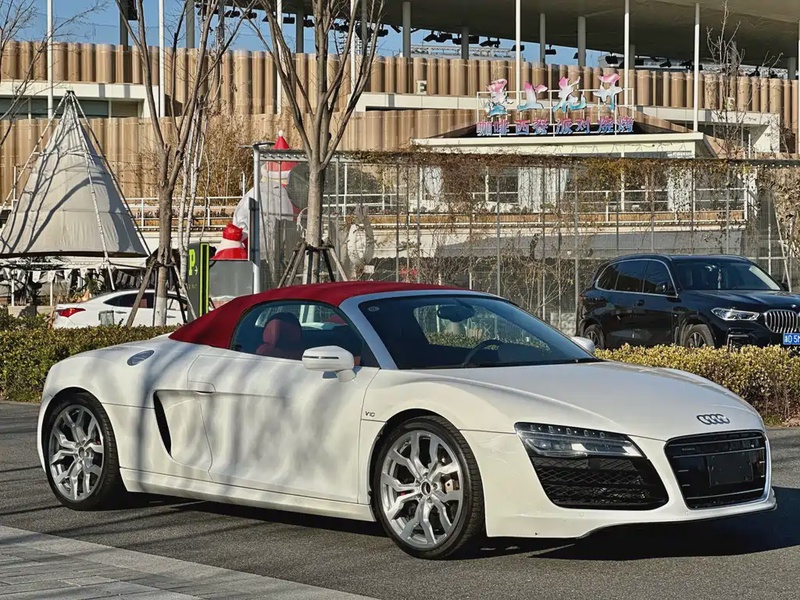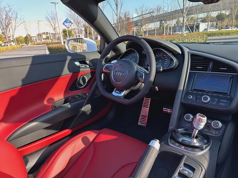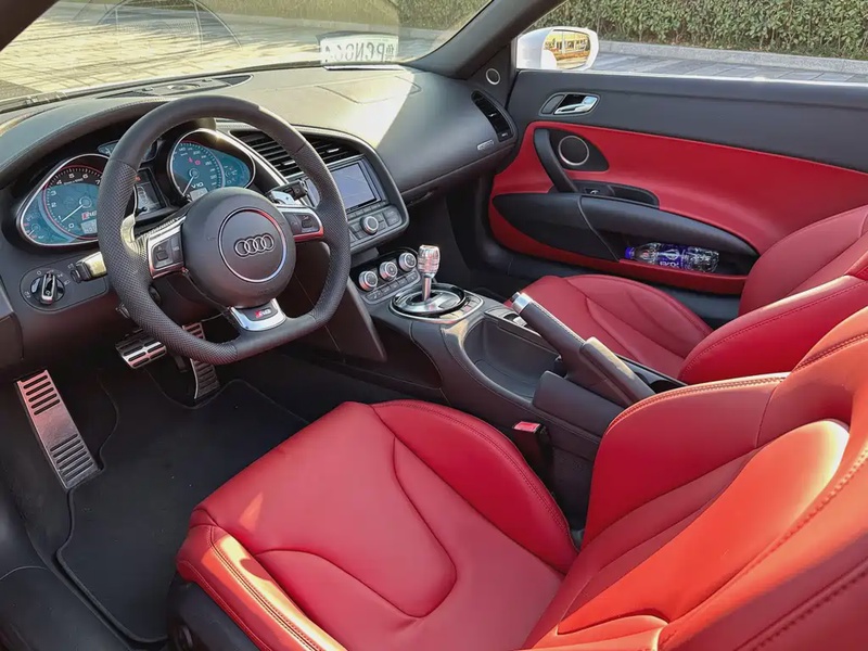 Автомобиль Audi R8 2014 года выпуска представлен в спортивном кузове Spyder с мягкой складной крышей. Модель оснащена бензиновым двигателем V10 объёмом 5,2 литра, который работает в паре с 7-ступенчатой роботизированной коробкой передач с двойным сцеплением и системой полного привода quattro. Комплектация включает высокопроизводительные характеристики: мощность 525 лошадиных сил, разгон до 100 км/ч за 3,8 секунды и максимальную скорость 311 км/ч. Привод — постоянный полный (AWD). По данным пробега автомобиль прошёл около 50 тыс. км, что для модели этого класса указывает на умеренную эксплуатацию, вероятно, в смешанных городских и загородных условиях. Состояние автомобиля оценивается как хорошее: отсутствуют данные о кузовных повреждениях или страховых случаях, что свидетельствует об аккуратной эксплуатации и сохранности основных элементов. Интерьер двухместного салона, типичный для спорткаров, вероятно, поддерживается в надлежащем состоянии без серьёзных износов. С учётом страны происхождения — Китай — условия хранения и обслуживания могли соответствовать стандартам производителя. Автомобиль находится в Китае и доступен к покупке с последующей доставкой в Россию.