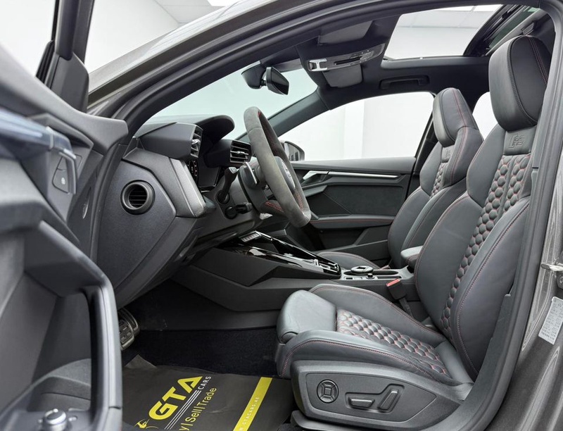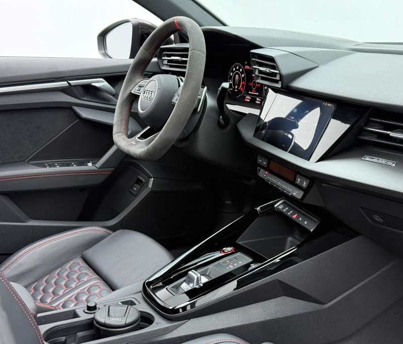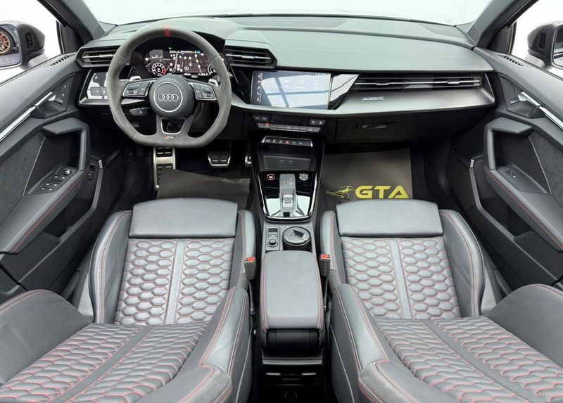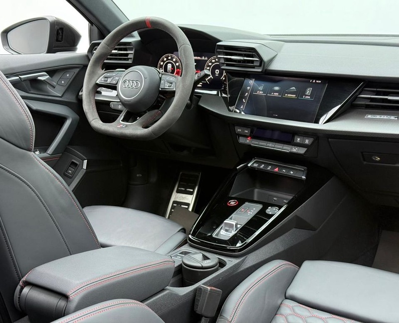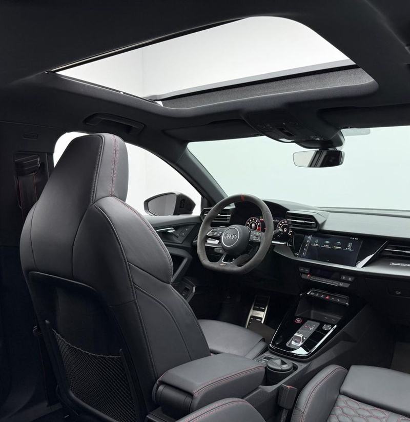 Модель Audi RS3 2023 года выпуска представлена в комплектации TFSI quattro с бензиновым двигателем объемом 2.5 литра и системой полного привода AWD. Автомобиль оснащен автоматической трансмиссией и имеет пробег 12 тыс. км. По данным осмотра, транспортное средство не имеет зафиксированных повреждений кузовных элементов и демонстрирует чистую страховую историю без обращений и выплат. С учётом пробега характер эксплуатации можно охарактеризовать как умеренный, преимущественно городской режим с редкими выездами на трассу. Состояние интерьера соответствует пробегу - сохранность отделки и функциональность систем находятся на ожидаемом уровне для автомобиля данного возраста. Техническое обслуживание проводилось согласно регламенту производителя, что обеспечивает надежную работу всех узлов и агрегатов. Автомобиль находится в ОАЭ и доступен к покупке с последующей доставкой в Россию.