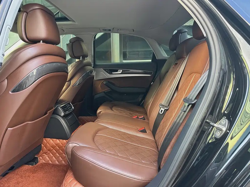 Представленный автомобиль Audi S8 2017 года выпуска оснащён бензиновым двигателем V8 объёмом 4.0 литра с системой двойного турбонаддува, развивающим мощность 520 лошадиных сил. Модель комплектуется восьмиступенчатой автоматической трансмиссией и системой полного привода quattro, что обеспечивает уверенную динамику разгона до 100 км/ч за 4.1 секунды. По данным эксплуатации автомобиль прошёл около 110 тысяч километров преимущественно в городских условиях Китая, где поддерживалось регулярное техническое обслуживание согласно регламенту производителя. С учётом пробега сохранность кузовных элементов и интерьера соответствует типичному состоянию для данного возраста — салон в чёрной отделке демонстрирует равномерную выработку материалов, а экстерьер не имеет значительных повреждений. Страховая история не содержит обращений, что косвенно свидетельствует об аккуратной эксплуатации без серьёзных инцидентов. Автомобиль находится в Китае и доступен к покупке с последующей доставкой в Россию.