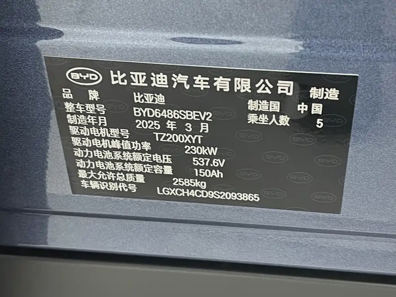 Электрический кроссовер BYD Seal 07 EV 2025 года выпуска представлен в комплектации 610智驾版 с задним приводом (RWD). Автомобиль оснащён электродвигателем мощностью, характерной для данного сегмента, что обеспечивает динамичный разгон и комфортную эксплуатацию в городском цикле и на трассе. По данным осмотра, кузовные элементы не имеют повреждений, что свидетельствует об аккуратном использовании. Страховая история отсутствует, что указывает на безаварийную эксплуатацию. С учётом пробега в 9 тыс. км состояние автомобиля оценивается как отличное: сохранность интерьера соответствует минимальному износу, техническое обслуживание проведено своевременно. Условия эксплуатации в Китае способствовали поддержанию хорошего технического состояния. Автомобиль находится в Китае и доступен к покупке с последующей доставкой в Россию.