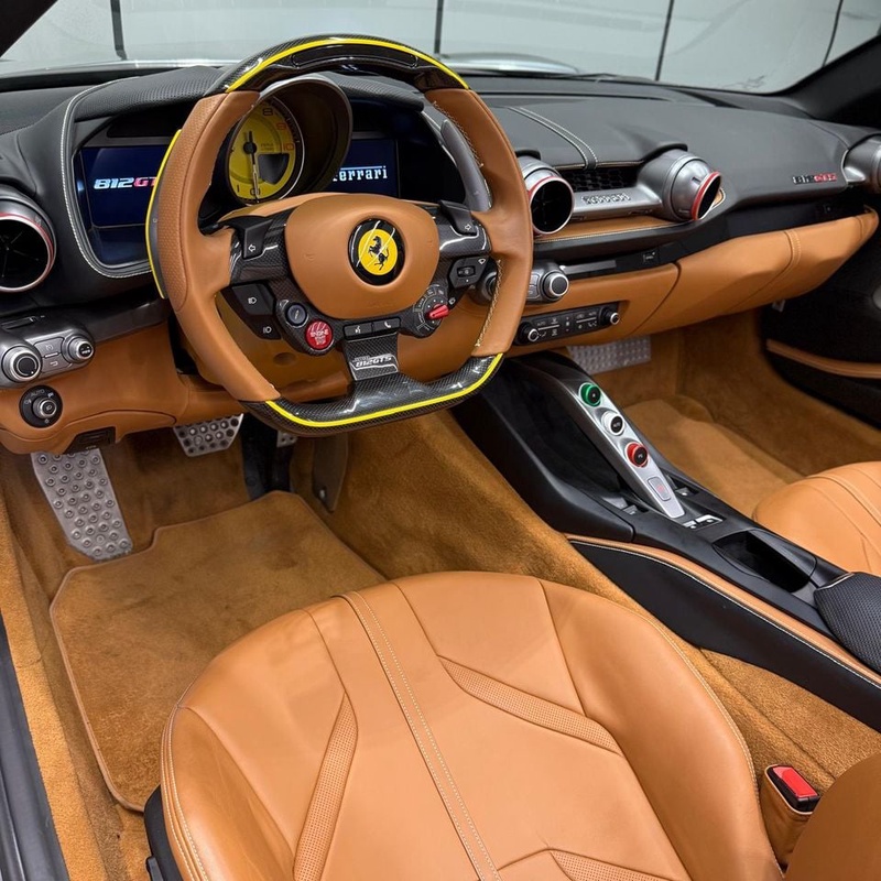 Модель Ferrari 812 представлена в кузове Spider с задним приводом RWD. Автомобиль выпущен в 2020 году и оснащён бензиновым двигателем объёмом 6,5 литра, который обеспечивает высокую производительность. По данным осмотра, машина имеет пробег около 12 тыс. км, что свидетельствует о преимущественно умеренной эксплуатации, возможно, с преобладанием городских поездок и редких выездов на трассу. Учитывая низкий пробег для данного года выпуска, можно предположить аккуратное обслуживание и хорошую сохранность интерьера. Типичное состояние для такого пробега обычно соответствует отличным техническим и внешним параметрам. Автомобиль находится в Объединённых Арабских Эмиратах и доступен к покупке с последующей доставкой в Россию.