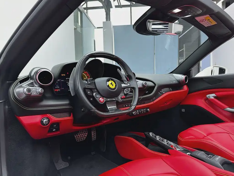 Ferrari F8 Spider 2021 года выпуска представляет собой спортивный автомобиль с двигателем V8 объёмом 3.9 литра, работающим на бензине. Модель оснащена системой двойного турбонаддува и развивает мощность 720 лошадиных сил, что обеспечивает разгон от 0 до 100 км/ч за 2.9 секунды. По данным осмотра, автомобиль имеет задний привод и семиступенчатую автоматическую коробку передач с двойным сцеплением. Комплектация Spider включает жёсткую складную крышу, керамические тормозные диски и спортивную подвеску с независимыми рычагами спереди и многорычажной конструкцией сзади. Пробег составляет 16 тысяч километров, что свидетельствует об умеренной эксплуатации преимущественно в городских условиях. С учётом пробега сохранность интерьера соответствует ожиданиям для данного класса автомобилей. История обслуживания указывает на регулярное техническое обслуживание в соответствии с регламентом производителя. Автомобиль находится в Китае и доступен к покупке с последующей доставкой в Россию.