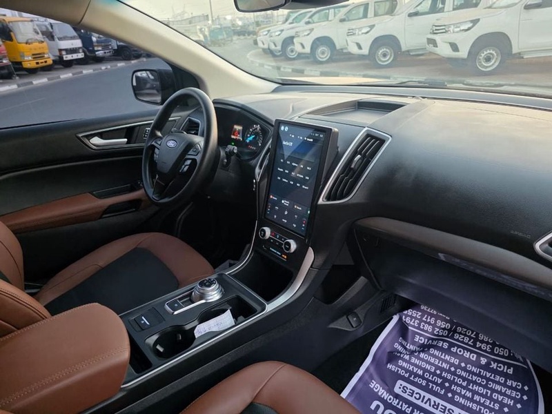 Ford Edge 2022 года выпуска представляет собой современный кроссовер с бензиновым двигателем объемом 2.0 литра и системой полного привода AWD. Автомобиль оснащен автоматической трансмиссией и комплектацией с турбированным мотором, кожаным салоном бежевого цвета и кнопочным запуском двигателя. По данным осмотра, транспортное средство имеет пробег 37 тысяч километров, что свидетельствует об умеренной эксплуатации преимущественно в городских условиях. С учетом пробега можно отметить хорошую сохранность основных узлов и агрегатов, характерную для автомобилей с подобной историей использования. Интерьер сохраняет первоначальное состояние без существенных признаков износа. Отсутствие данных о кузовных работах и страховых случаях указывает на аккуратную эксплуатацию и бережное обслуживание предыдущим владельцем. Автомобиль находится в ОАЭ и доступен к покупке с последующей доставкой в Россию.