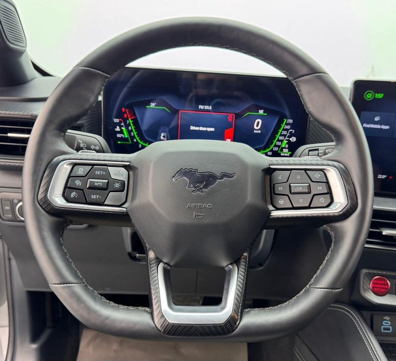 Ford Mustang 2024 года выпуска представляет собой спортивный автомобиль с бензиновым двигателем V8 объёмом 5,0 литра и задним приводом. Комплектация GT Performance package включает расширенный пакет производительности, автоматическую коробку передач и заводскую гарантию до 2029 года. Автомобиль имеет относительно небольшой пробег — около 16 тысяч километров, что свидетельствует об ограниченной эксплуатации, вероятно, в смешанных городских и загородных условиях. По данным осмотра, кузовные повреждения отсутствуют, а страховые обращения за весь период владения не зафиксированы, что указывает на аккуратную эксплуатацию и отсутствие серьёзных инцидентов. С учётом пробега и технического состояния можно отметить хорошую сохранность интерьера и ходовой части, типичную для автомобилей с подобной историей. Модель оснащена современными системами безопасности и комфорта, характерными для данного сегмента. Автомобиль находится в Объединённых Арабских Эмиратах и доступен к покупке с последующей доставкой в Россию.