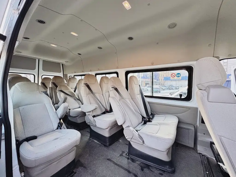Ford Transit Custom 2021 года выпуска представляет собой коммерческий минивэн, оснащённый дизельным двигателем объёмом 2.2 литра и автоматической трансмиссией. Автомобиль имеет задний привод (RWD) и комплектацию Pro с удлинённой колёсной базой, двумя задними шинами, боковой раздвижной дверью, высокой крышей и рассчитан на 17 мест. Пробег составляет всего 9 тыс. км, что указывает на ограниченную эксплуатацию, вероятно, в смешанных городских и загородных условиях. По данным осмотра, кузовные повреждения отсутствуют, а страховая история не содержит обращений или выплат, что свидетельствует об аккуратном использовании и сохранности автомобиля в отличном состоянии для данного пробега. Интерьер поддерживается в хорошем состоянии без видимых следов износа. Автомобиль находится в Китае и доступен к покупке с последующей доставкой в Россию.