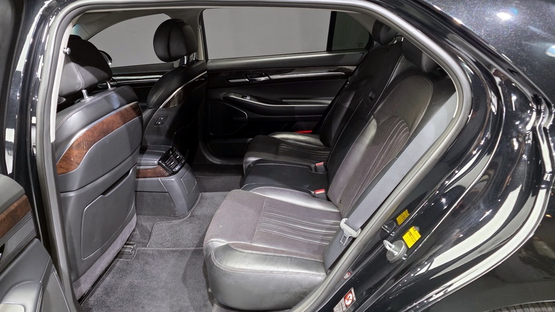 Представленная модель Genesis EQ900 2016 года выпуска оснащена бензиновым двигателем объёмом 3.8 л с системой полного привода AWD в комплектации Premium Luxury. Пробег автомобиля составляет 308 тыс. км, что свидетельствует о преимущественно смешанном режиме эксплуатации, включающем городские и загородные поездки. По данным осмотра, на автомобиле проводились кузовные работы: выполнены ремонты переднего правого крыла, левого переднего крыла, правой задней двери и обоих задних крыльев; произведены замены правого переднего крыла, капота, правой передней двери и переднего бампера. Страховая история показывает 15 обращений с общей суммой выплат 1 661 000 рублей, что указывает на активное использование транспортного средства. С учётом пробега и характера повреждений состояние автомобиля можно оценить как удовлетворительное для своего возраста и километража; интерьер сохранился в типичном для данного пробега состоянии при условии регулярного обслуживания. Автомобиль находится в Южной Корее и доступен к покупке с последующей доставкой в Россию.