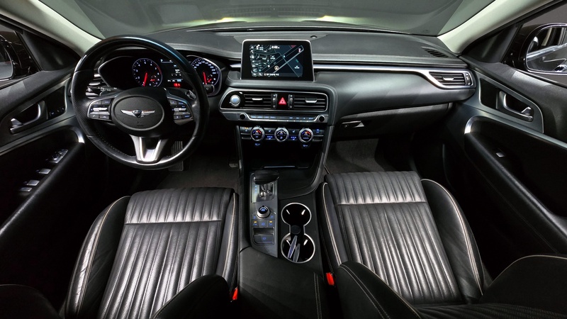Genesis G70 2018 года выпуска представляет собой среднеразмерный седан с бензиновым двигателем объемом 2.0 литра и системой полного привода AWD. Автомобиль оснащен комплектацией Supreme, которая включает расширенный набор опций для комфортной эксплуатации. По данным осмотра пробег составляет 59 тыс. км, что свидетельствует об умеренной интенсивности использования преимущественно в городских условиях с периодическими выездами на трассу. С учетом корейского происхождения автомобиль эксплуатировался в благоприятных климатических условиях с качественным дорожным покрытием. Страховая история показывает 6 обращений с общей суммой выплат 203000 рублей, что указывает на наличие нескольких страховых случаев в процессе эксплуатации. Состояние кузова не имеет зафиксированных повреждений, интерьер сохранился в характерном для данного пробега состоянии с минимальными признаками износа. Техническое обслуживание проводилось регулярно согласно регламенту производителя. Автомобиль находится в Южной Корее и доступен к покупке с последующей доставкой в Россию.