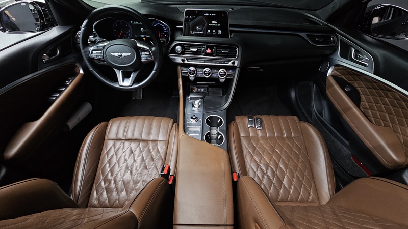 Genesis G70 2018 года выпуска представлен в дизельной версии с двигателем объемом 2.2 литра и системой полного привода AWD. Автомобиль комплектуется пакетом оснащения Supreme, что обеспечивает высокий уровень комфорта и безопасности. Пробег составляет 126 тысяч километров, что соответствует умеренной эксплуатации преимущественно в городских условиях с редкими выездами на трассу. По данным осмотра автомобиль имеет историю кузовных работ: выполнены ремонты левой передней двери, правого заднего крыла, панели задней части, правой передней двери, левой задней двери, кронштейнов передних крыльев и задней левой чашки опоры; произведены замены левого заднего крыла, крышки багажника, переднего бампера, капота и передних крыльев. Страховая история показывает 15 обращений с общей суммой выплат 1 091 000 рублей, что свидетельствует об активной эксплуатации транспортного средства. С учетом пробега и проведенных работ автомобиль сохраняет удовлетворительное техническое состояние, интерьер поддерживается в аккуратном виде, характерном для данного пробега. Автомобиль находится в Южной Корее и доступен к покупке с последующей доставкой в Россию.