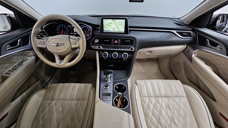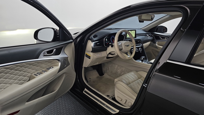 Модель Genesis G70 2019 года выпуска представлена в комплектации Elite 2.0T с бензиновым двигателем объемом 2.0 литра и передним приводом. Пробег автомобиля составляет 70 тыс. км, что соответствует умеренной эксплуатации преимущественно в городских условиях с периодическими выездами на трассу. По данным осмотра, на правой передней двери проводились кузовные работы, включая рихтовку и сварку, однако остальные элементы кузова сохранили заводское состояние без следов коррозии или серьезных повреждений. Страховая история показывает четыре обращения с общей суммой выплат около 203 тысяч рублей, что может свидетельствовать о нескольких мелких инцидентах в процессе эксплуатации. С учетом пробега и проведенных работ, техническое состояние автомобиля оценивается как удовлетворительное: двигатель и основные узлы функционируют нормально, салон сохранил аккуратность без заметных дефектов обивки или панелей управления. Для автомобиля из Южной Кореи характерно качественное обслуживание и своевременное прохождение техосмотров, что положительно влияет на общую сохранность. Автомобиль находится в Южной Корее и доступен к покупке с последующей доставкой в Россию.
