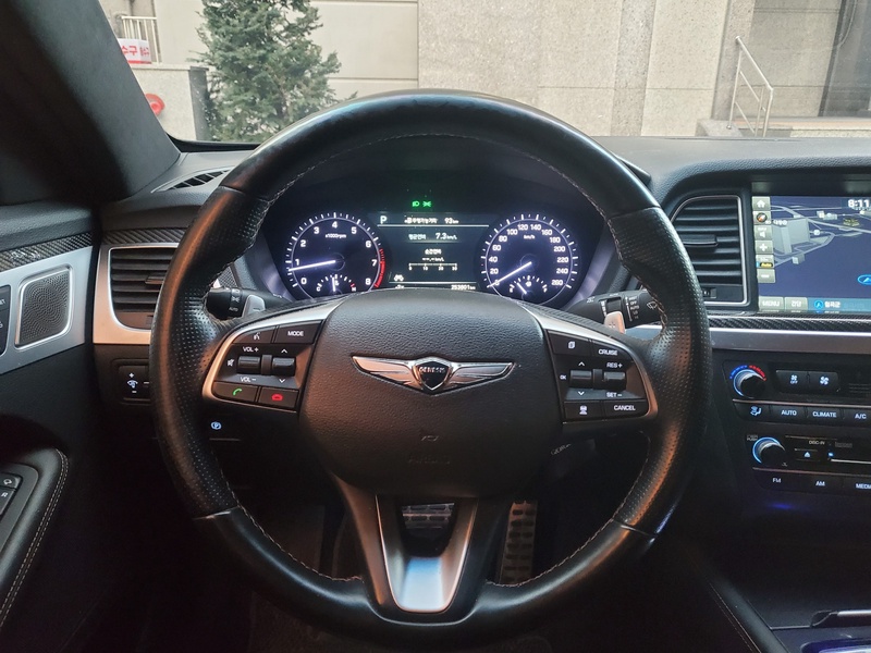 Представительский седан Genesis G80 2018 года выпуска оснащён бензиновым двигателем объёмом 3.4 литра с системой полного привода AWD и автоматической трансмиссией. Автомобиль представлен в спортивной комплектации Sport с богатым оснащением. По данным осмотра, пробег составляет 254 тыс. км, что соответствует смешанному режиму эксплуатации с преимущественным использованием в городских условиях. С учётом истории эксплуатации из Южной Кореи, автомобиль имеет заменённые кузовные элементы: капот, оба передних крыла и передний бампер. Страховая история показывает 6 обращений с общей суммой выплат 1 533 000 рублей, что свидетельствует об активной эксплуатации транспортного средства. При этом техническое состояние основных агрегатов оценивается как удовлетворительное: двигатель и трансмиссия функционируют нормально, системы охлаждения и электрооборудования находятся в рабочем состоянии. Интерьер сохранил приемлемое качество для данного пробега, характерное для автомобилей корейского рынка с регулярным обслуживанием. Автомобиль находится в Южной Корее и доступен к покупке с последующей доставкой в Россию.