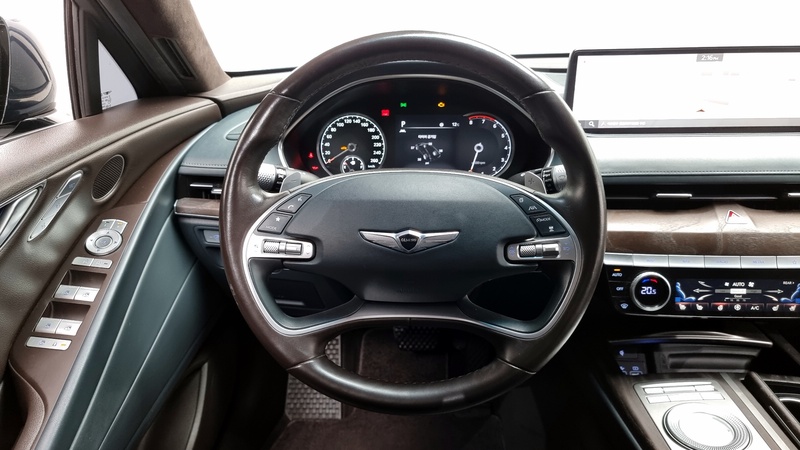 Представительский седан Genesis G80 2020 года выпуска оснащён бензиновым двигателем объёмом 3.5 литра с турбонаддувом и системой полного привода AWD. Комплектация Gasoline 3.5 Turbo AWD обеспечивает автомобилю высокий уровень оснащения и комфорта. Пробег составляет 213 тысяч километров, что соответствует смешанному режиму эксплуатации с преимущественным использованием на трассе. По данным осмотра, автомобиль имеет историю трёх страховых случаев с общей суммой выплат 133000 рублей, что свидетельствует о нормальной эксплуатации без серьёзных происшествий. Состояние кузова и интерьера соответствует пробегу, техническое обслуживание проводилось регулярно. Автомобиль находится в Южной Корее и доступен к покупке с последующей доставкой в Россию.