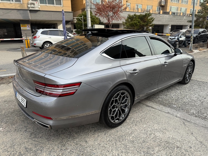 Представительский седан Genesis G80 2023 года выпуска оснащён бензиновым двигателем объёмом 2.5 л с турбонаддувом и системой полного привода AWD. Комплектация Gasoline 2.5 Turbo AWD включает современное оборудование для комфортной эксплуатации в городских условиях и на трассе. Пробег автомобиля составляет 84 тыс. км, что соответствует умеренной интенсивности использования. По истории эксплуатации в Южной Корее отмечено аккуратное обслуживание и отсутствие кузовных повреждений, что подтверждается нулевым количеством страховых обращений и выплат. Сохранность интерьера и технических узлов характерна для данного пробега при регулярном техобслуживании. Автомобиль находится в Южной Корее и доступен к покупке с последующей доставкой в Россию.