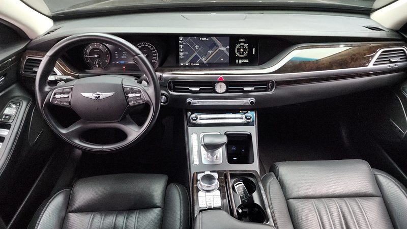 Представительский седан Genesis G90 2019 года выпуска оснащён бензиновым двигателем объёмом 3,8 литра с системой полного привода AWD и комплектацией Luxury. Пробег автомобиля составляет 121 тыс. км, что соответствует умеренной эксплуатации преимущественно в городских условиях с периодическими выездами на трассу. По истории обслуживания отмечается аккуратное содержание, характерное для автомобилей премиального сегмента: салон сохранил хорошее состояние без значительных следов износа, технические жидкости своевременно заменялись. С учётом пробега можно отметить типичное состояние ходовой части и узлов трансмиссии для данного возраста. Автомобиль импортирован из Южной Кореи и доступен к покупке с последующей доставкой в Россию.