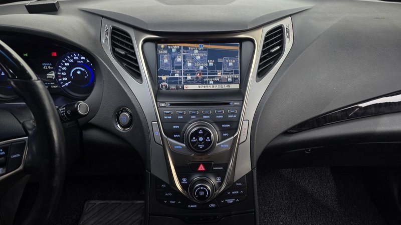 Представленная модель Hyundai Grandeur 2013 года выпуска оснащена бензиновым двигателем объемом 3.0 литра, привод уточняется, комплектация Exclusive. Пробег автомобиля составляет около 124 тыс. км, импорт произведён из Южной Кореи. По данным осмотра, на автомобиле были выполнены кузовные работы по замене левого переднего крыла и левой передней двери. Страховая история показывает наличие 7 обращений с общей суммой выплат около 374000 рублей, что свидетельствует об активной эксплуатации в прошлом. С учётом пробега и проведённых ремонтов состояние автомобиля можно оценить как удовлетворительное для своего возраста; характер эксплуатации предположительно смешанный — городские и загородные поездки. Внутренняя отделка сохраняет приемлемый вид при типичном для данного пробега уровне износа, техническое обслуживание проводилось регулярно согласно корейским стандартам. Автомобиль находится в Южной Корее и доступен к покупке с последующей доставкой в Россию.