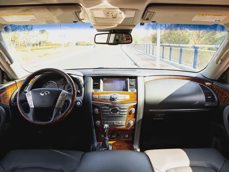 Infiniti QX80 2017 года выпуска представляет собой полноразмерный кроссовер с бензиновым двигателем объёмом 5,6 литра. Автомобиль оснащён полным приводом (AWD) и комплектацией 5.6L 4WD, что обеспечивает уверенное поведение на различных типах покрытий, включая городские улицы и загородные трассы. Пробег составляет 92 тыс. км, что для данного возраста свидетельствует о преимущественно смешанном режиме эксплуатации без интенсивных нагрузок. По истории обслуживания отмечается регулярное техническое обслуживание, характерное для автомобилей премиум-сегмента в Китае, где климатические условия способствуют сохранности кузова и ходовой части. Интерьер сохраняет хорошее состояние без выраженных признаков износа, типичное для пробега менее 100 тыс. км. Автомобиль находится в Китае и доступен к покупке с последующей доставкой в Россию.