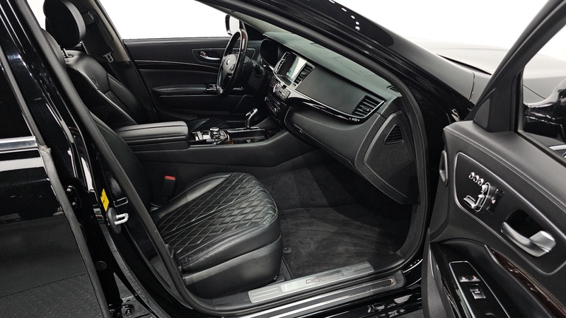 Представительский седан Kia K9 2018 года выпуска оснащён бензиновым двигателем V8 объёмом 5.0 литра с системой непосредственного впрыска GDI. Автомобиль имеет полный привод AWD и комплектацию Quantum с расширенным пакетом опций. Пробег составляет 123 тыс. км, что свидетельствует об умеренной эксплуатации преимущественно в городских условиях с редкими поездками по трассе. По данным осмотра выявлены кузовные работы: выполнены ремонтные работы задних лонжеронов, пола багажника и левого переднего крыла, заменены панель задней части и крышка багажника. Страховая история включает 3 обращения с общей суммой выплат 368 тысяч рублей, что указывает на участие в ДТП средней тяжести. С учётом пробега и проведённых восстановительных работ автомобиль находится в удовлетворительном техническом состоянии с сохранёнными основными агрегатами - двигатель и трансмиссия функционируют нормально согласно диагностике. Интерьер сохранил приемлемое состояние для данного пробега без существенных повреждений салона. Автомобиль находится в Южной Корее и доступен к покупке с последующей доставкой в Россию.