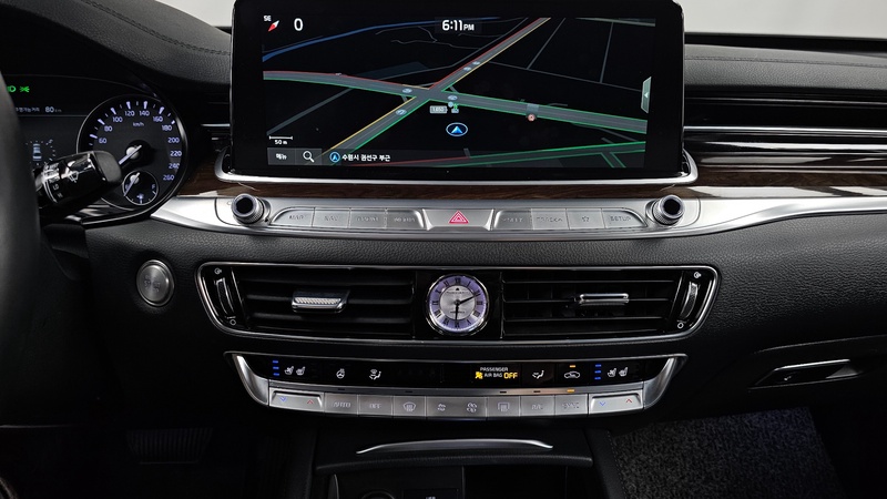 Представительский седан Kia K9 2018 года выпуска оснащён бензиновым двигателем G6DN объёмом 3.8 литра с системой непосредственного впрыска топлива. Автомобиль имеет автоматическую трансмиссию и полный привод, что обеспечивает уверенное поведение на различных дорожных покрытиях. По комплектации Platinum I модель предлагает расширенное оснащение премиум-класса. Пробег составляет 159 тысяч километров, что соответствует умеренной эксплуатации преимущественно в городских условиях с периодическими выездами на трассу. По данным осмотра отмечены кузовные работы: выполнена замена левого переднего крыла и ремонт правого заднего крыла. Страховая история включает 5 обращений с общей суммой выплат 418000 рублей, что свидетельствует о нескольких страховых случаях в период эксплуатации. С учётом пробега и проведённых работ автомобиль демонстрирует типичное для данного возраста состояние с признаками аккуратного обслуживания основных агрегатов при наличии восстановленных кузовных элементов. Сохранность интерьера соответствует пробегу, технические системы по данным диагностики функционируют нормально. Автомобиль находится в Южной Корее и доступен к покупке с последующей доставкой в Россию.