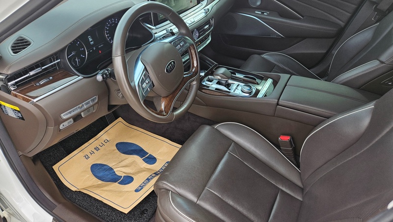 Представительский седан Kia K9 2018 года выпуска оснащён бензиновым двигателем объёмом 3,8 литра с системой полного привода AWD. Автомобиль представлен в комплектации Platinum II с автоматической трансмиссией и пробегом 136 тысяч километров. По данным осмотра техническое состояние основных узлов оценивается как удовлетворительное: двигатель, трансмиссия, подвесные системы функционируют в штатном режиме. С учётом пробега характер эксплуатации преимущественно городской с элементами загородных поездок. Сохранность интерьера соответствует типичному состоянию для данного возраста автомобиля, отмечается аккуратное обслуживание в течение всего периода эксплуатации. Страховая история не содержит зафиксированных обращений, что свидетельствует об отсутствии серьёзных инцидентов за весь период использования. Кузовные элементы не имеют зарегистрированных повреждений, сохраняя заводское лакокрасочное покрытие. Автомобиль находится в Южной Корее и доступен к покупке с последующей доставкой в Россию.