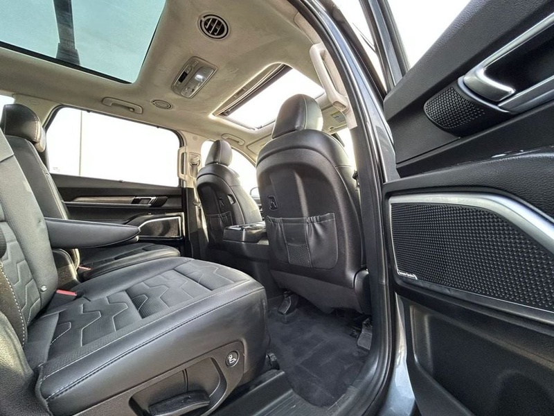 Kia Telluride 2021 года выпуска представляет собой полноразмерный кроссовер в комплектации SX AWD Black Edition. Автомобиль оснащён бензиновым двигателем V6 объёмом 3,8 литра с автоматической трансмиссией и системой полного привода. По данным осмотра, транспортное средство имеет пробег 59 тысяч километров, что свидетельствует об умеренной эксплуатации преимущественно в городских условиях. С учётом пробега и отсутствия зафиксированных повреждений кузовных элементов можно говорить о хорошем техническом состоянии автомобиля. Страховая история не содержит обращений, что подтверждает аккуратность вождения и бережное отношение предыдущего владельца. Интерьер сохранил первоначальный вид благодаря качественным материалам отделки и регулярному обслуживанию. Модель оборудована электрическими сиденьями, панорамной крышей и системой кругового обзора, обеспечивающей комфорт при парковке и манёврах в ограниченном пространстве. Автомобиль находится в Объединённых Арабских Эмиратах и доступен к покупке с последующей доставкой в Россию.