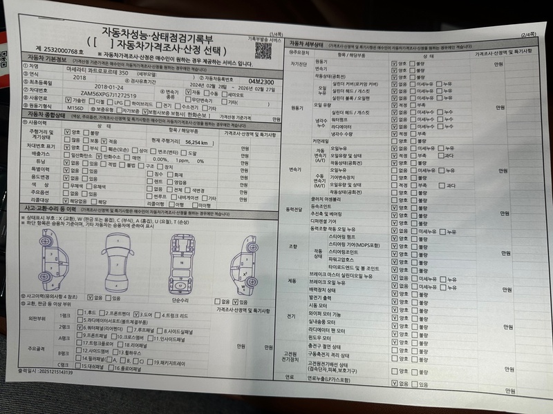 Представительский седан Maserati Quattroporte 2018 года выпуска оснащён бензиновым двигателем объёмом 3.0 литра с приводом. Комплектация V6 характеризуется сбалансированными динамическими качествами и комфортом для городской эксплуатации. По данным осмотра, автомобиль имеет пробег 55 тыс. км, что соответствует умеренной интенсивности использования преимущественно в городских условиях. С учётом корейского происхождения, машина демонстрирует типичное для данного рынка состояние: регулярное техническое обслуживание, сохранность салона и кузовных элементов. Страховая история включает 2 обращения с общей суммой выплат 1 241 000 рублей, что указывает на стандартную эксплуатацию без серьёзных инцидентов. Состояние автомобиля оценивается как хорошее для своего возраста и пробега, с минимальными следами естественного износа интерьера и ходовой части. Автомобиль находится в Южной Корее и доступен к покупке с последующей доставкой в Россию.