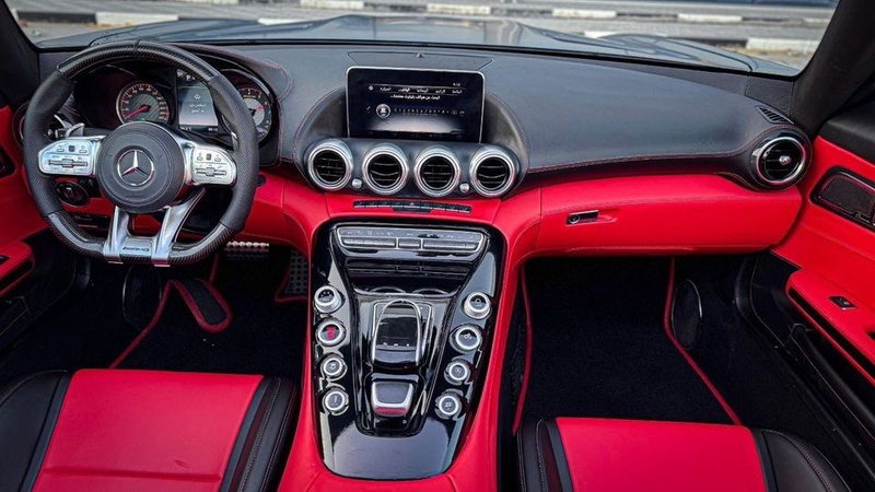 Mercedes-Benz AMG GT 2018 года выпуска представлен с бензиновым двигателем V8 BITURBO мощностью, обеспечивающей динамичные характеристики. Автомобиль оснащён автоматической трансмиссией и имеет пробег всего 20 тыс. км, что свидетельствует об ограниченной эксплуатации преимущественно в городских условиях. По данным осмотра, кузовные элементы сохранили заводское состояние без следов ремонтных работ, интерьер в красной отделке демонстрирует аккуратное содержание. С учётом минимального пробега и отсутствия страховых обращений, модель характеризуется отличным техническим состоянием, типичным для автомобилей с подобной историей использования в ОАЭ. Автомобиль находится в ОАЭ и доступен к покупке с последующей доставкой в Россию.