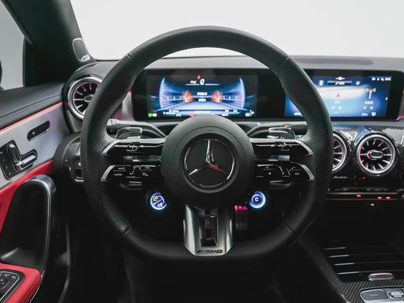 Mercedes-Benz CLA AMG 2025 года выпуска представляет собой компактный спортивный седан с бензиновым двигателем объёмом 2,0 литра, оснащённым турбонаддувом и 48-вольтовой гибридной системой. Автомобиль оборудован восьмиступенчатой автоматической коробкой передач и полным приводом AWD, что обеспечивает уверенное сцепление в различных дорожных условиях. Комплектация AMG CLA 35 4MATIC включает расширенный пакет опций, адаптированный для динамичной езды. Пробег составляет около 5 тыс. км, что свидетельствует о минимальной эксплуатации преимущественно в городском режиме. По данным осмотра кузовные элементы не имеют повреждений, а страховая история отсутствует — это указывает на аккуратное обслуживание и сохранность транспортного средства. С учётом пробега интерьер находится в отличном состоянии, характерном для автомобилей такого возраста. Модель импортирована из Китая, где соблюдаются стандарты обслуживания премиальных марок. Автомобиль находится в Китае и доступен к покупке с последующей доставкой в Россию.