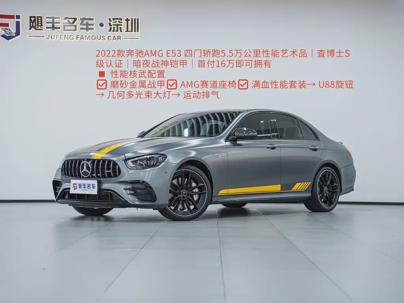 Mercedes-Benz E-Class AMG 2022 года выпуска представляет собой мощный седан премиум-класса с бензиновым двигателем 3.0 литра и системой полного привода. Автомобиль оснащён комплектацией AMG E 53 4MATIC+, которая включает турбированный шестицилиндровый мотор с электрическим наддувом, развивающий 435 лошадиных сил, и 9-ступенчатую автоматическую трансмиссию. По данным осмотра, пробег составляет 53 тыс. км, что соответствует умеренной эксплуатации в смешанном режиме — городские поездки сочетаются с загородными маршрутами. Учитывая страну происхождения — Китай, автомобиль обслуживался в соответствии с высокими стандартами дилерской сети, сохраняя оригинальное техническое состояние и интерьер без видимых повреждений. Страховая история отсутствует, что свидетельствует об аккуратной эксплуатации без серьёзных инцидентов. Сохранность кузова и ходовой части оценивается как отличная для данного пробега, все системы функционируют штатно. Автомобиль находится в Китае и доступен к покупке с последующей доставкой в Россию.