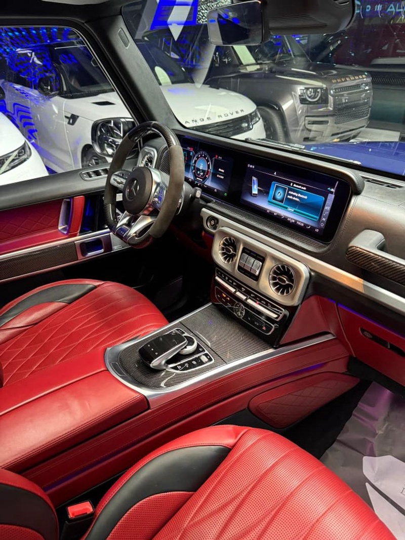 Модель представлена в кузове внедорожник Mercedes-Benz G 2019 года выпуска с бензиновым двигателем объемом 4.0 литра и полным приводом AWD в комплектации G63 AMG. По данным осмотра автомобиль имеет пробег около 103 тыс. км, что соответствует смешанному режиму эксплуатации с преимущественным использованием в городских условиях. С учётом пробега сохранность интерьера оценивается как хорошая, характерная для данного километража при регулярном обслуживании. Автомобиль находится в Объединённых Арабских Эмиратах и доступен к покупке с последующей доставкой в Россию.