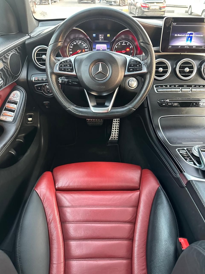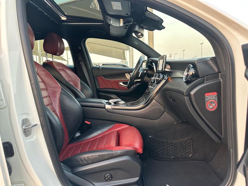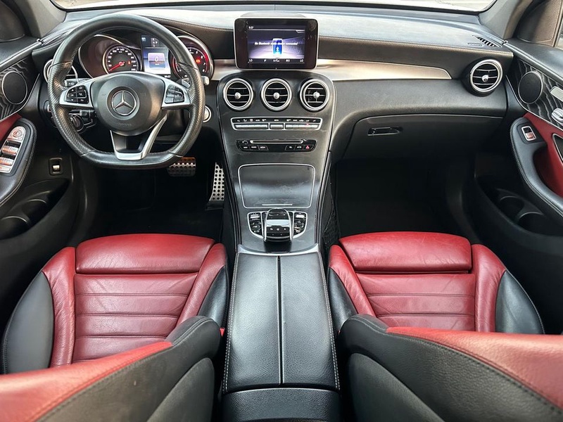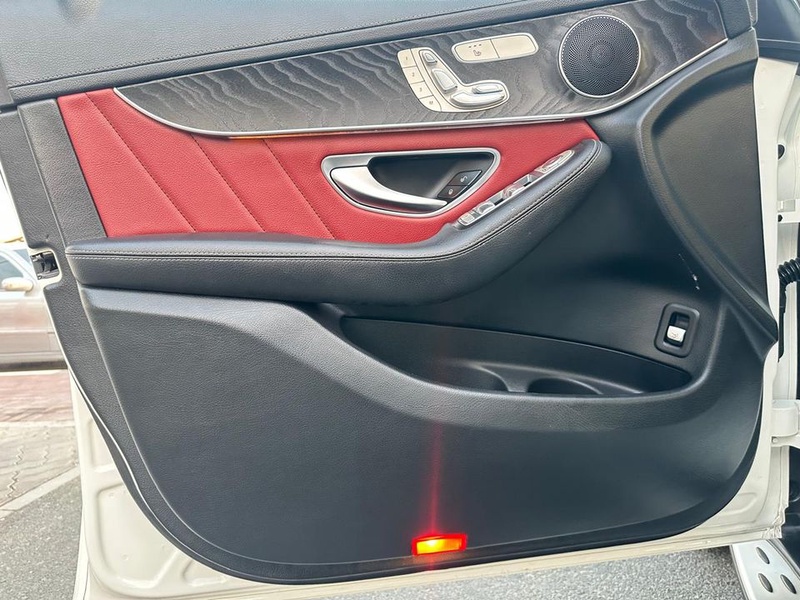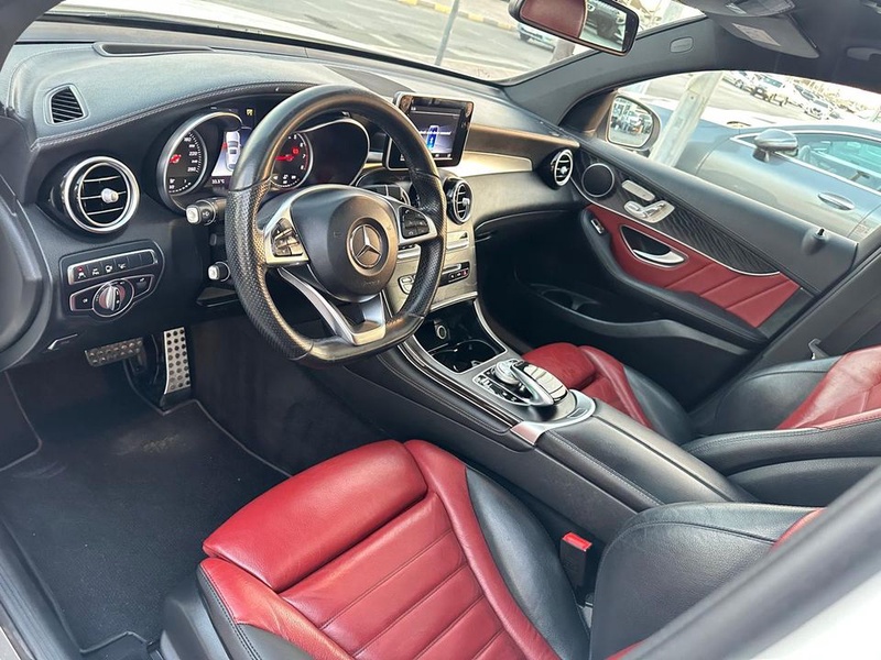 Mercedes-Benz GLC 2018 года выпуска представлен с бензиновым двигателем и системой полного привода AWD. Модель оснащена комплектацией Coupe с расширенным набором опций, включая 18-дюймовые колесные диски и двухцветный интерьер в белом кузове с красной отделкой салона. Пробег автомобиля составляет 107 тысяч километров, что соответствует умеренной эксплуатации преимущественно в городских условиях с периодическими выездами на трассу. По данным осмотра, транспортное средство не имеет зафиксированных повреждений кузовных элементов и страховых обращений, что свидетельствует об аккуратном использовании и регулярном техническом обслуживании. Сохранность интерьера соответствует типичному состоянию для данного пробега, без существенных следов износа основных элементов. С учетом отсутствия страховых случаев и повреждений, автомобиль можно охарактеризовать как сохранивший хорошее техническое состояние. Mercedes-Benz GLC находится в Объединенных Арабских Эмиратах и доступен к покупке с последующей доставкой в Россию.