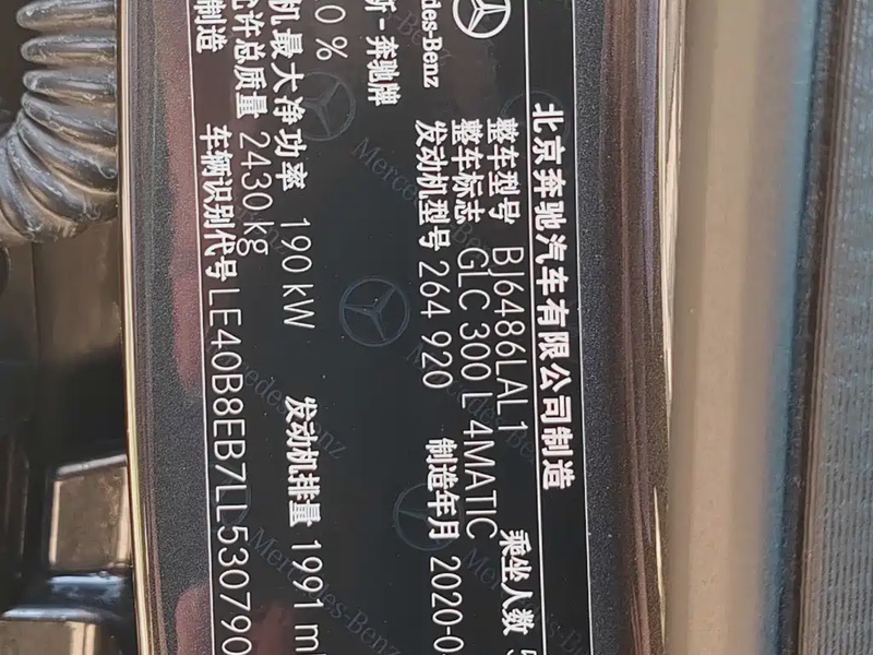 Модель представлена в кузове SUV 2020 года выпуска, оснащена бензиновым двигателем объёмом 2.0 литра с турбонаддувом. Автомобиль имеет полный привод (AWD) и комплектацию GLC 300 L 4MATIC AMG Line. Пробег составляет 72 тыс. км, что соответствует умеренной эксплуатации в смешанном режиме — городском и загородном. Учитывая пробег, можно отметить характерное для данного возраста сохранение технических характеристик и внешнего вида при регулярном обслуживании. Страховая история не содержит обращений, что свидетельствует об отсутствии серьёзных инцидентов за период эксплуатации. По данным осмотра кузовные элементы не имеют повреждений, интерьер сохраняет аккуратное состояние без видимых дефектов. С учётом всех факторов автомобиль демонстрирует хорошее техническое состояние, типичное для моделей с аналогичным пробегом и историей обслуживания в условиях Китая. Автомобиль находится в Китае и доступен к покупке с последующей доставкой в Россию.