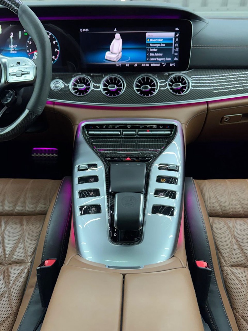 Mercedes-Benz GT 2019 года выпуска оснащён бензиновым двигателем объёмом 4,0 литра с системой полного привода AWD. Автомобиль представлен в комплектации AMG 4MATIC+ с дополнительными опциями Carbon Fiber Package. Пробег составляет 31 тыс. км, что свидетельствует об умеренной эксплуатации преимущественно в смешанных условиях. По данным осмотра кузовных повреждений не зафиксировано, что указывает на аккуратное использование и своевременное обслуживание. Сохранность интерьера соответствует пробегу, характерному для автомобилей данного класса. С учётом истории эксплуатации модель демонстрирует типичное состояние для указанного километража без значительных отклонений. Автомобиль находится в Объединённых Арабских Эмиратах и доступен к покупке с последующей доставкой в Россию.