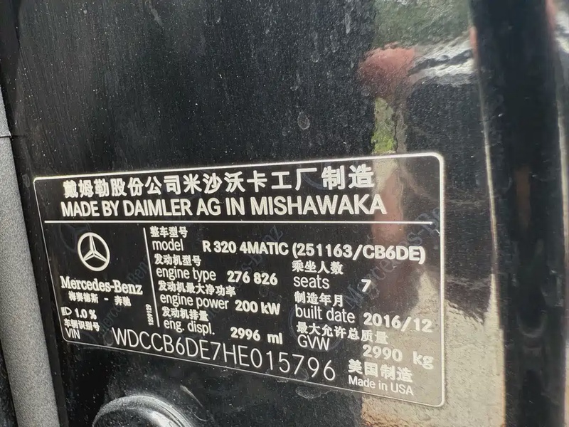 Mercedes-Benz R-Class 2017 года выпуска оснащён бензиновым двигателем V6 с объёмом 3,0 литра и системой двойного турбонаддува. Автомобиль имеет полный привод AWD и комплектацию R 320 4MATIC Business Edition Limited. Пробег составляет 239 тысяч километров, что соответствует смешанному режиму эксплуатации в городских и загородных условиях. По данным осмотра кузовные повреждения отсутствуют, а страховые обращения не зафиксированы, что свидетельствует об аккуратном использовании и надлежащем обслуживании. С учётом пробега состояние автомобиля оценивается как хорошее: сохранность интерьера соответствует типичному уровню для данного возраста и пробега, технические узлы поддерживаются в рабочем состоянии. Автомобиль импортирован из Китая и доступен к покупке с последующей доставкой в Россию.