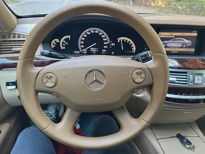 Модель Mercedes-Benz S-Class 2007 года выпуска оснащена бензиновым двигателем объёмом 3.6 литра с системой непосредственного впрыска топлива и мощностью 272 л.с., что обеспечивает уверенную динамику разгона от 0 до 100 км/ч за 7.3 секунды при максимальной скорости в 250 км/ч. Автомобиль имеет задний привод (RWD) и автоматическую коробку передач с семью ступенями, которая обеспечивает плавное переключение и адаптируется к стилю вождения. Комплектация «S 350 L» включает расширенный список опций: систему адаптивной пневматической подвески AIRMATIC для повышенного комфорта, электронноусилитель руля, кожаный салон с отделкой деревом, двухзонный климат-контроль, мультимедийную систему с навигацией и панорамную стеклянную крышу. По истории эксплуатации пробег составляет около 160 тыс. км, что соответствует смешанному режиму использования — преимущественно городские поездки с периодическими выездами на трассу. Учитывая возраст автомобиля и пройденное расстояние, техническое состояние оценивается как удовлетворительное: кузовные элементы не имеют значительных повреждений или следов ремонта, интерьер сохранил презентабельный вид без заметных износов обивки сидений и панелей управления. Страховая история отсутствует — за время владения не было зафиксировано обращений по страховым случаям или выплат, что указывает на аккуратное вождение и регулярное обслуживание у официальных дилеров в Китае. С учётом пробега можно отметить типичное для данного возраста состояние ходовой части: подвеска требует плановой диагностики, а тормозная система — замены колодок и дисков в соответствии с регламентом технического обслуживания. Автомобиль находится в Китае и доступен к покупке с последующей доставкой в Россию.