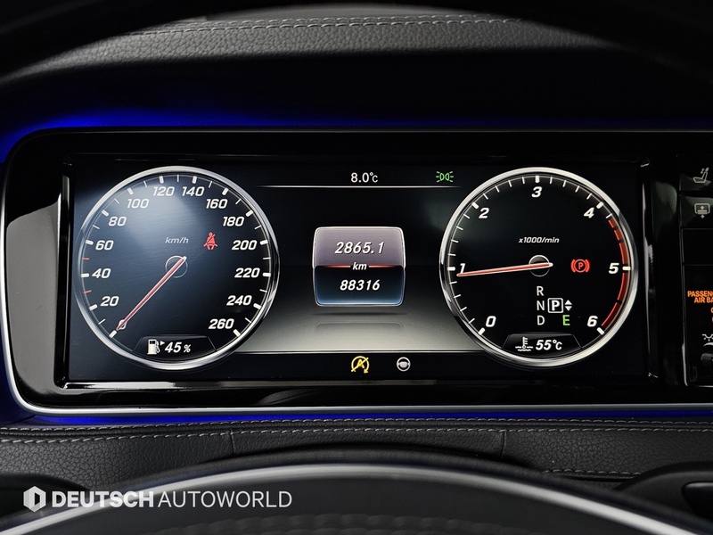 Представленная модель Mercedes-Benz S-Class 2016 года выпуска оснащена дизельным двигателем объёмом 3.0 литра в комплектации S350 d 4MATIC с полным приводом. Автомобиль имеет пробег 88 тыс. км и импортирован из Южной Кореи. По данным осмотра, техническое состояние узлов и агрегатов, включая двигатель, трансмиссию и ходовую часть, оценено как исправное, что свидетельствует о регулярном обслуживании в авторизованных сервисных центрах. В истории эксплуатации отсутствуют зафиксированные ДТП или кузовные ремонтные работы, а страховая история не содержит обращений по страховым случаям, что подтверждает аккуратное вождение и бережную эксплуатацию преимущественно в городских условиях. С учётом пробега сохранность интерьера соответствует типичному состоянию для данного возраста модели — отсутствуют значительные потёртости на сиденьях и панелях управления. Динамические характеристики обеспечивают уверенное поведение на трассе и комфорт при ежедневном использовании. Автомобиль находится в Южной Корее и доступен к покупке с последующей доставкой в Россию.