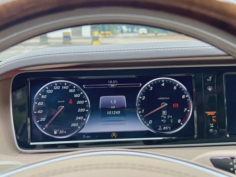 Mercedes-Benz S-Class 2017 года выпуска представлен в комплектации S 600 с бензиновым двигателем V12 объёмом 6.0 литра и системой двойного турбонаддува, развивающим мощность 530 л.с. Автомобиль оснащён автоматической коробкой передач и задним приводом (RWD). По данным осмотра, пробег составляет 100 тыс. км, что соответствует умеренной эксплуатации преимущественно в городском режиме с периодическими выездами на трассу. С учётом пробега можно отметить характерное для данного возраста состояние: кузовные элементы без видимых повреждений, интерьер сохранился удовлетворительно, техническое обслуживание проводилось регулярно. Страховая история отсутствует, что указывает на аккуратную эксплуатацию без серьёзных инцидентов. Общее состояние автомобиля оценивается как хорошее для своего возраста и пробега, соответствуя типичным параметрам для моделей этого класса. Автомобиль находится в Китае и доступен к покупке с последующей доставкой в Россию.