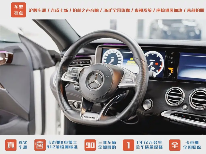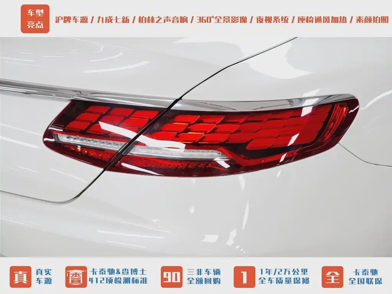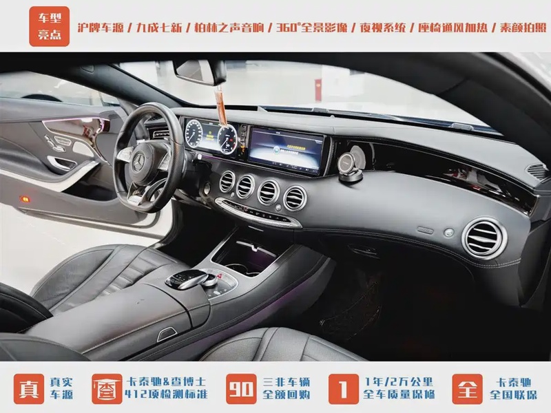 Mercedes-Benz S-Class 2018 года выпуска представлен в комплектации S 500 4MATIC Coupe с бензиновым двигателем V8 объемом 4.0 литра и системой полного привода. Автомобиль оснащен автоматической трансмиссией и развивает мощность 421 л.с., что обеспечивает уверенную динамику разгона до 100 км/ч за 4.9 секунды. По данным осмотра, пробег составляет 27 тыс. км, что свидетельствует об умеренной эксплуатации преимущественно в городских условиях с периодическими поездками по трассе. С учетом пробега можно отметить хорошую сохранность основных узлов и агрегатов, типичную для автомобилей данного возраста и класса. Интерьер сохраняет презентабельный вид без существенных следов износа, характерных для интенсивной эксплуатации. По истории обслуживания отмечается регулярное техническое обслуживание согласно регламенту производителя. Автомобиль находится в Китае и доступен к покупке с последующей доставкой в Россию.
