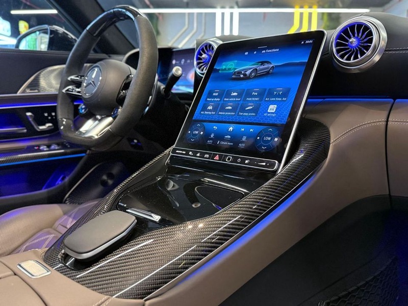 Mercedes-Benz SL-Class 2023 года выпуска представлен в комплектации AMG с бензиновым двигателем объемом 4.0 литра и системой полного привода AWD. Автомобиль оснащен автоматической трансмиссией и имеет минимальный пробег всего 8 тыс. км, что свидетельствует о преимущественно городской эксплуатации с аккуратным обслуживанием. По данным осмотра кузовные элементы не имеют повреждений, а страховой истории обращений не зафиксировано, что указывает на безаварийное состояние транспортного средства. С учетом пробега можно отметить отличную сохранность салона с углеродными элементами отделки и полную историю сервисного обслуживания. Характер эксплуатации соответствует смешанному режиму использования с преобладанием городских поездок. Типичное состояние автомобиля для данного пробега оценивается как близкое к новому, что подтверждается отсутствием страховых случаев и повреждений кузова. Автомобиль находится в ОАЭ и доступен к покупке с последующей доставкой в Россию.