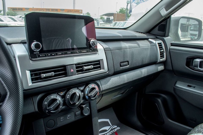 Модель представлена в кузове пикап с полным приводом AWD и механической коробкой передач. Автомобиль 2025 года выпуска оснащён бензиновым двигателем объёмом 2.4 литра, который обеспечивает оптимальный баланс мощности и экономичности для эксплуатации в городских условиях и на трассе. По данным осмотра транспортное средство не имеет повреждений кузовных элементов и страховых обращений, что свидетельствует о безаварийной истории и аккуратном обслуживании. С учётом нулевого пробега автомобиль находится в состоянии нового транспортного средства с полностью сохранённым интерьером чёрного цвета. Комплектация GLX включает расширенный набор опций для комфортной эксплуатации в различных климатических условиях ОАЭ. Автомобиль находится в ОАЭ и доступен к покупке с последующей доставкой в Россию.