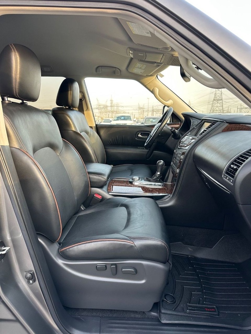 Nissan Armada 2020 года выпуска представлен с бензиновым двигателем объемом 5.6 литра и системой полного привода AWD. Автомобиль оснащен комплектацией 4WD с автоматической трансмиссией, что обеспечивает уверенное поведение на различных типах дорожного покрытия. По данным пробега в 123 тыс. км можно отметить характерную для данного возраста эксплуатацию преимущественно в смешанном режиме. С учетом отсутствия зафиксированных повреждений кузовных элементов и нулевой страховой истории автомобиль демонстрирует хорошее техническое состояние, соответствующее пробегу. Интерьер сохраняет презентабельный вид, что свидетельствует об аккуратном обслуживании предыдущим владельцем. Типичное для ОАЭ содержание транспортного средства в условиях сухого климата способствовало сохранности лакокрасочного покрытия и отсутствию коррозийных процессов. Автомобиль находится в Объединенных Арабских Эмиратах и доступен к покупке с последующей доставкой в Россию.
