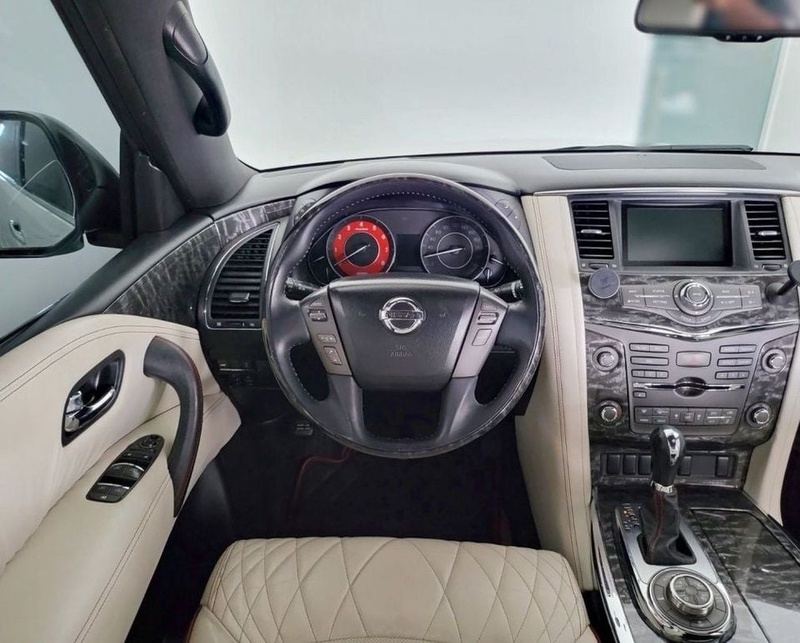 Nissan Patrol 2015 года выпуска оснащён бензиновым двигателем V8 объёмом 5.6 литра с автоматической трансмиссией. Автомобиль имеет пробег 116 тысяч километров, что свидетельствует об умеренной эксплуатации преимущественно в городских условиях с периодическими выездами на трассу. По данным осмотра, кузовные элементы сохранили заводское состояние без видимых повреждений и ремонтных работ. Страховая история не содержит зафиксированных обращений, что указывает на аккуратное вождение и отсутствие серьёзных инцидентов. С учётом пробега и технического состояния, автомобиль демонстрирует хорошую сохранность интерьера в бежевых тонах и соответствует типичным характеристикам для данного года выпуска. Модель представлена в комплектации Nismo Upgrade с 22-дюймовыми колёсными дисками, что подчёркивает её спортивный характер при сохранении комфорта для повседневной эксплуатации. Автомобиль находится в ОАЭ и доступен к покупке с последующей доставкой в Россию.