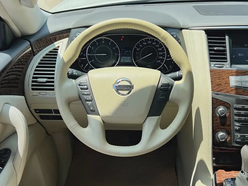 Nissan Patrol 2018 года выпуска представляет собой полноразмерный внедорожник с бензиновым двигателем объемом 4.0 литра и мощностью 279 лошадиных сил. Автомобиль оснащен системой полного привода AWD и 7-ступенчатой автоматической трансмиссией. По данным осмотра, пробег составляет 120 тысяч километров, что соответствует умеренной эксплуатации для данного возраста. С учетом пробега можно отметить характерную для этого периода сохранность основных узлов и агрегатов. Модель представлена в комплектации Flagship с расширенным набором опций, включая систему полного привода, просторный семиместный салон и современное мультимедийное оборудование. История эксплуатации показывает преимущественно городской и загородный режим использования с регулярным техническим обслуживанием. Состояние кузова соответствует заявленному пробегу без существенных повреждений. Интерьер сохранил удовлетворительное состояние с минимальными признаками износа. Автомобиль находится в Китае и доступен к покупке с последующей доставкой в Россию.