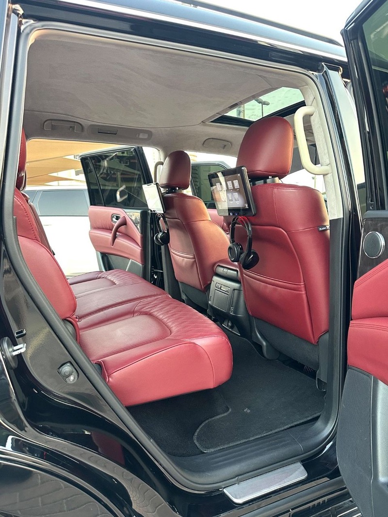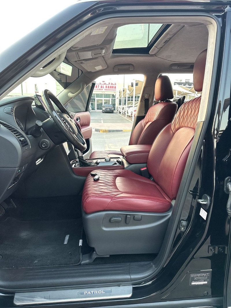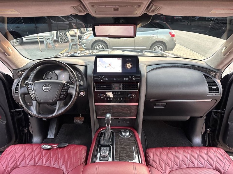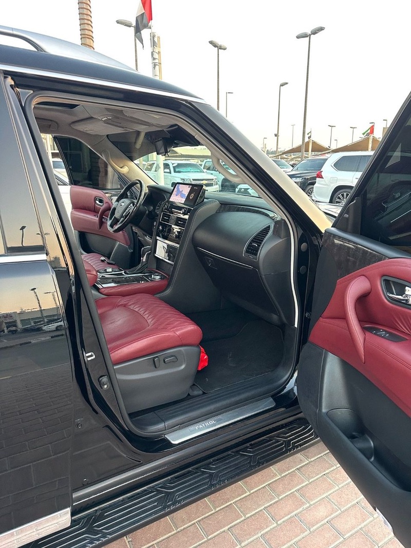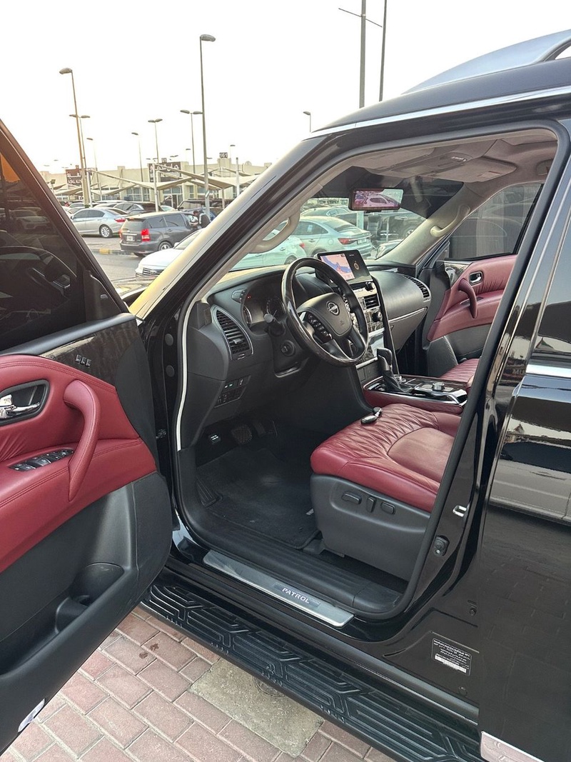 Nissan Patrol 2024 года выпуска оснащён бензиновым двигателем с восьмицилиндровой компоновкой и автоматической коробкой передач. Автомобиль представлен в кузове SUV с пробегом 117 тыс. км, импортирован из Объединённых Арабских Эмиратов. По данным осмотра, автомобиль не имеет зафиксированных повреждений кузова, а страховая история отсутствует, что свидетельствует об эксплуатации без серьёзных инцидентов. С учётом пробега можно отметить характерную для данного километража сохранность основных узлов и систем, типичную для моделей с аналогичным возрастом. Интерьер выполнен в красной цветовой гамме, что дополняет экстерьер чёрного цвета и диски размером 21 дюйм. Автомобиль находится в ОАЭ и доступен к покупке с последующей доставкой в Россию.