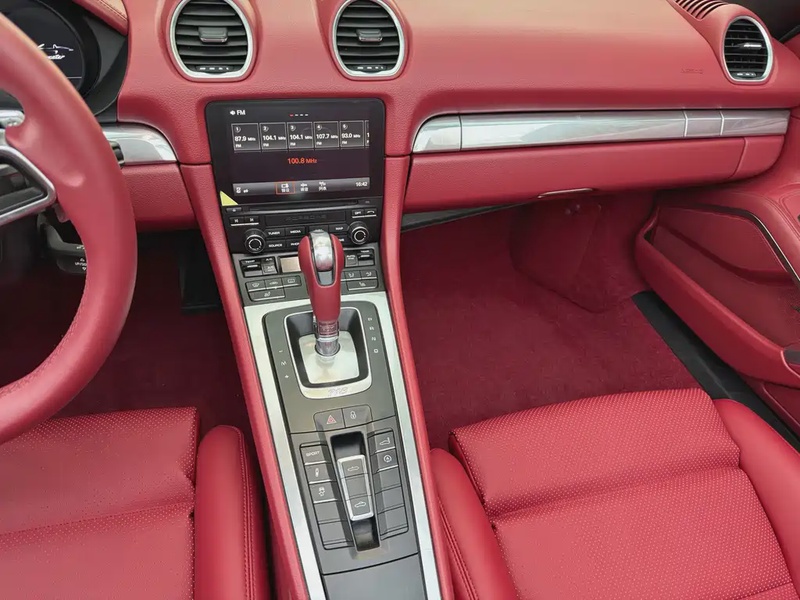 Модель Porsche 718 представлена в кузове кабриолет и выпущена в 2016 году. Автомобиль оснащён бензиновым двигателем объёмом 2,0 литра с турбонаддувом, который работает в паре с автоматической коробкой передач и обеспечивает задний привод. Комплектация Boxster включает двухместный салон и мягкую складную крышу. Пробег автомобиля составляет 56 тыс. км, что соответствует умеренной эксплуатации преимущественно в городских условиях с периодическими выездами на трассу. По данным осмотра кузовные элементы не имеют повреждений, а страховых обращений за весь период владения не зафиксировано. С учётом пробега и отсутствия страховых случаев можно отметить хорошее техническое состояние автомобиля: интерьер сохранился аккуратно, характер обслуживания соответствует типичным для данного года выпуска требованиям. Условия эксплуатации в Китае способствовали сохранности лакокрасочного покрытия и ходовой части. Автомобиль находится в Китае и доступен к покупке с последующей доставкой в Россию.
